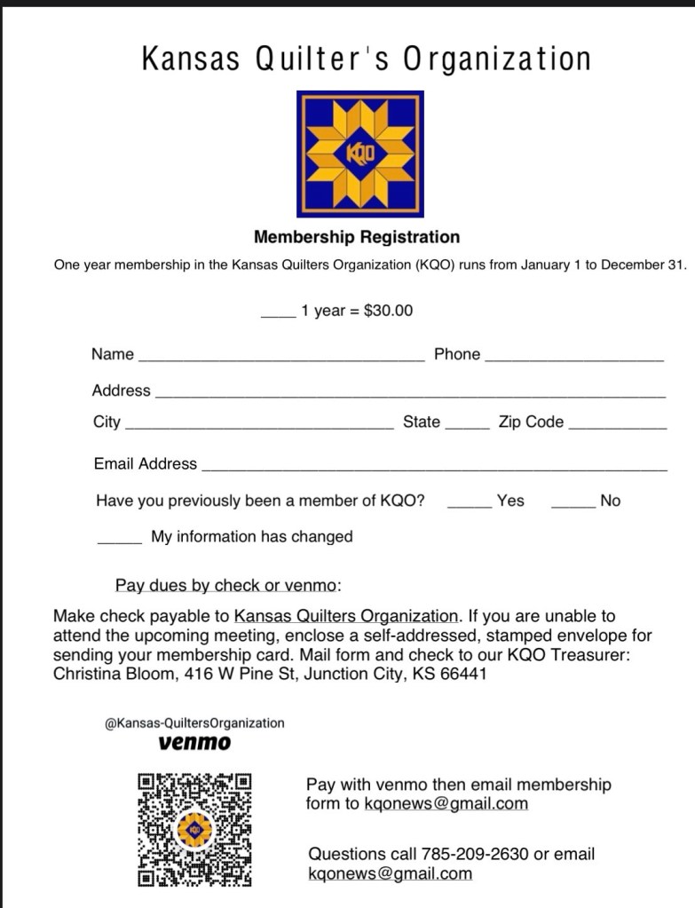 Announcing our Spring 2026 Date. We will be meeting in Manhattan at the Holiday at Campus on May 1 and 2nd. Our National Speaker will be Scott Flanagan from 4th and Main Designs. Check out FB on KQO Members or Kansas Quilters Organization where you can find regular updates. The newsletter will be published in March with all of the details and registration information.