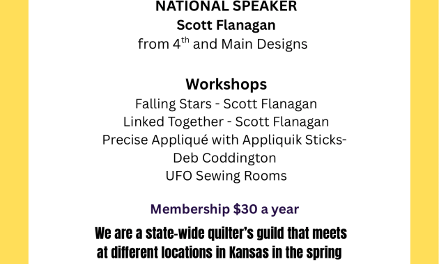 Spring 2026 Newsletter We are excited to publish our spring newsletter. We will be meeting in Manhattan, KS at the Holiday Inn on Campus on May 1st and 2nd. Scott Flanagan is teaching […] Kansas Quilters Organization 21 hours ago Leave a Comment
