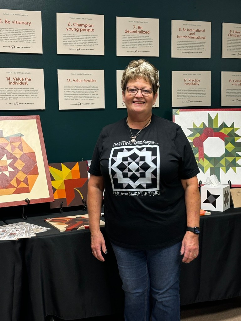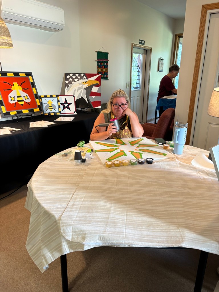 Kay Walker led a workshop on Barn Quilts. 13 members created either a 1′ by 1′ or a 2′ by 2′ barn quilt.