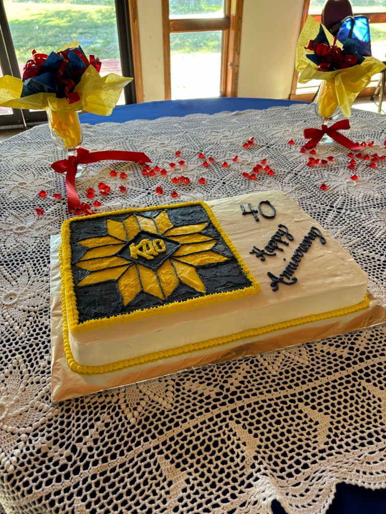 This September marked 40 years as an organization. We celebrated our Ruby Anniversary on Friday, September 27, 2024 after a full day of sewing. Our president, Alice Rush, started the festivities reading the history of KQO and recognizing two of our charter members. Nancy Swanwick and Tony Munoz took some time to share their experiences about those beginning years with KQO.